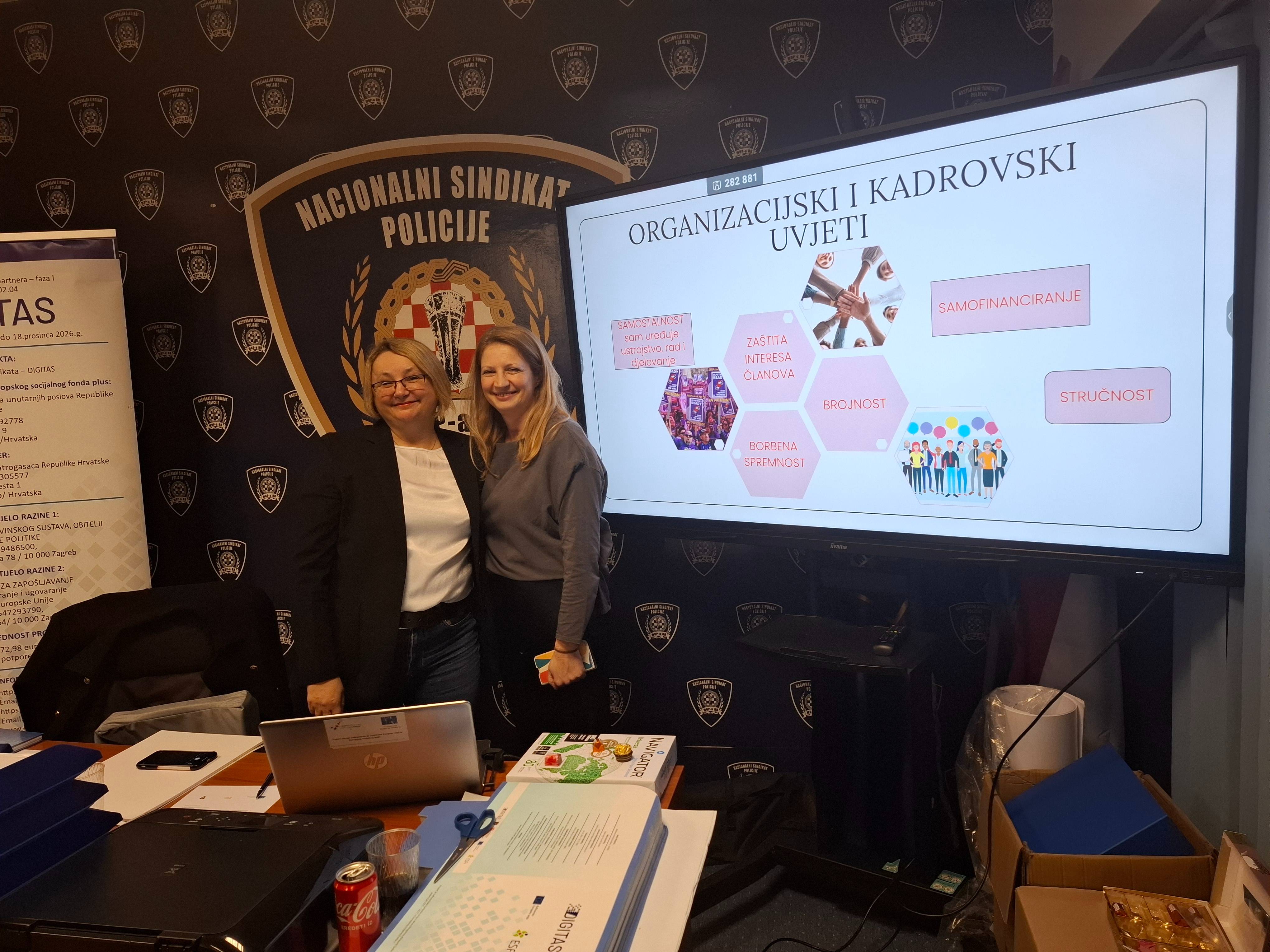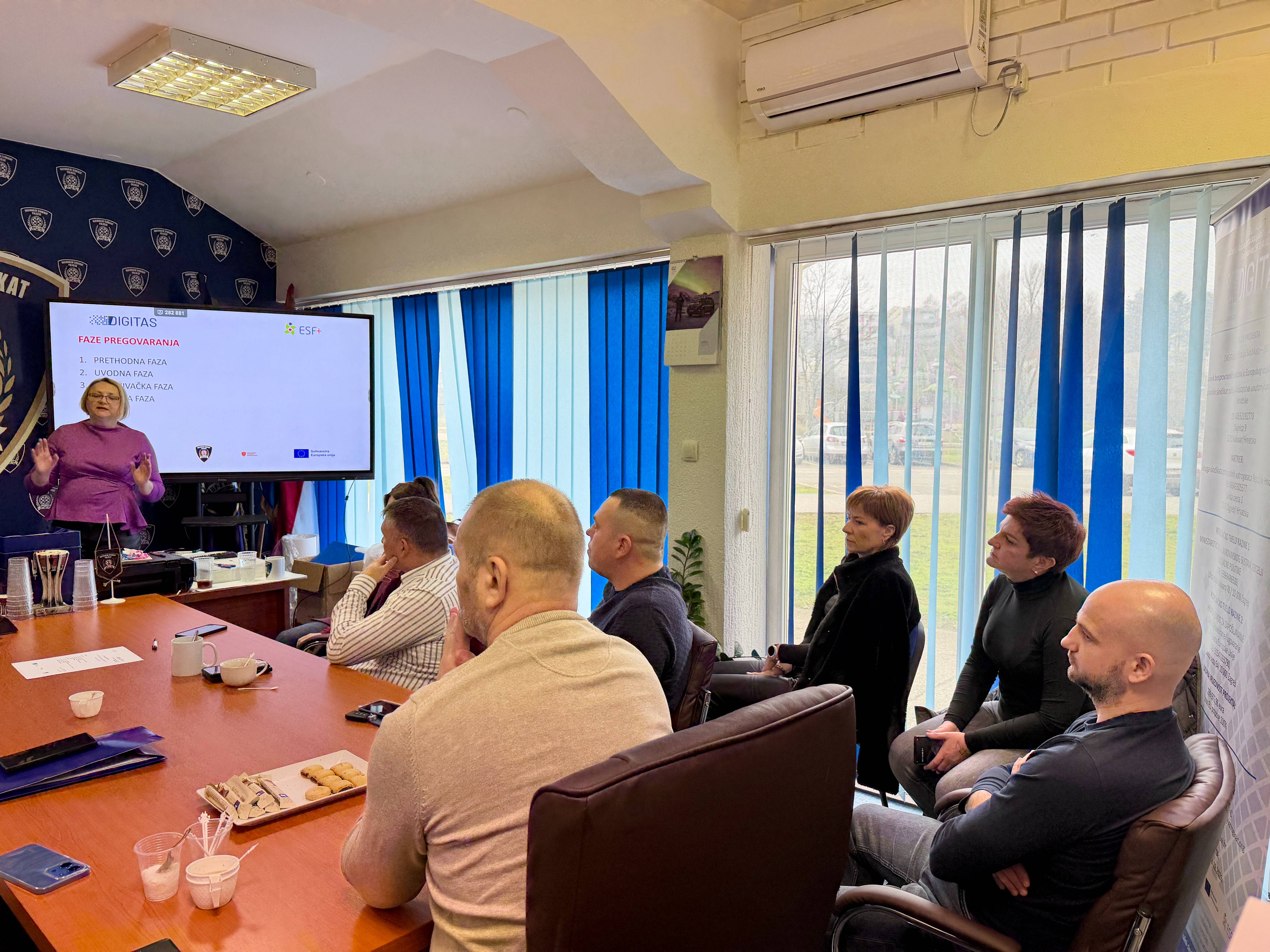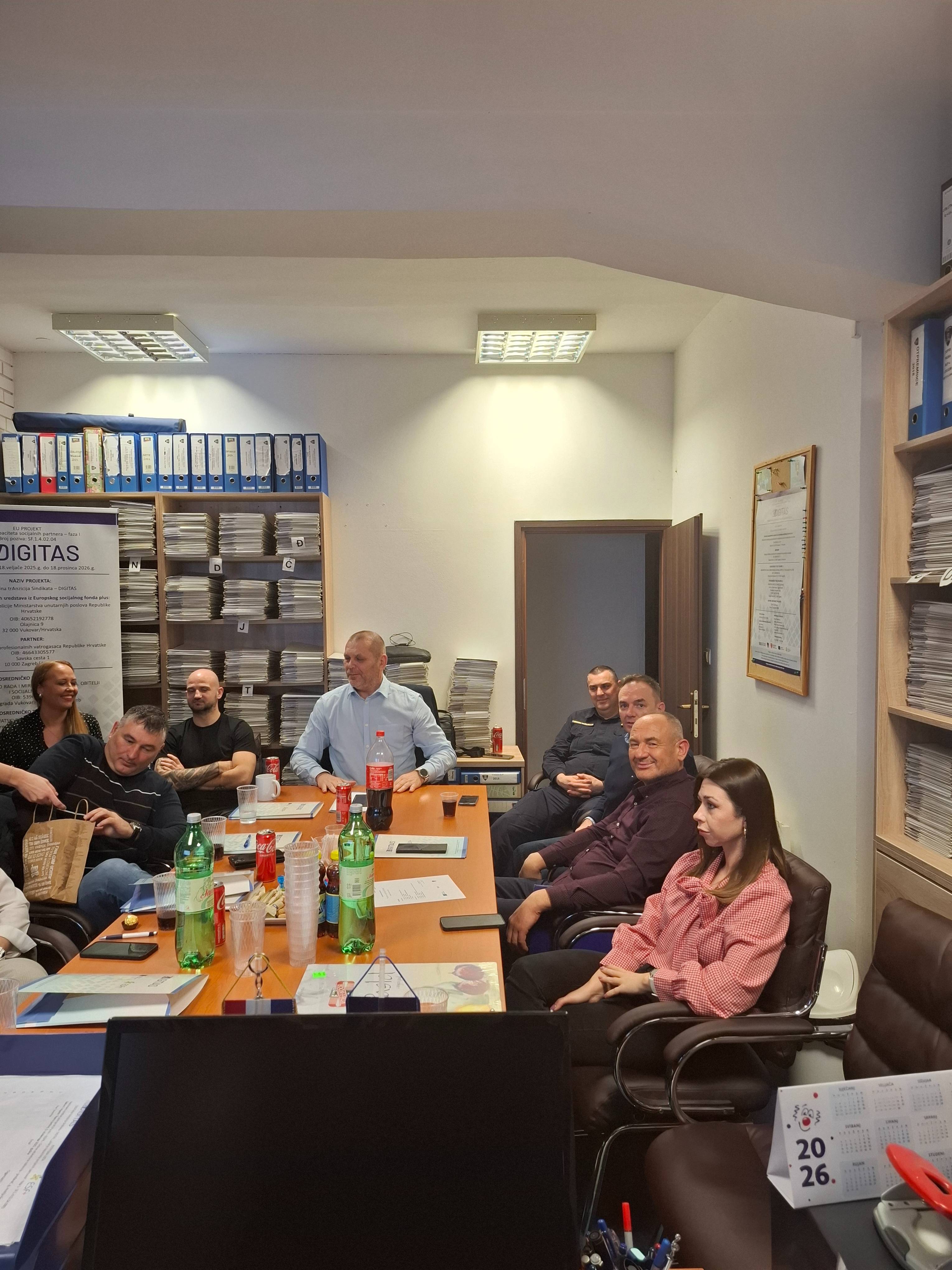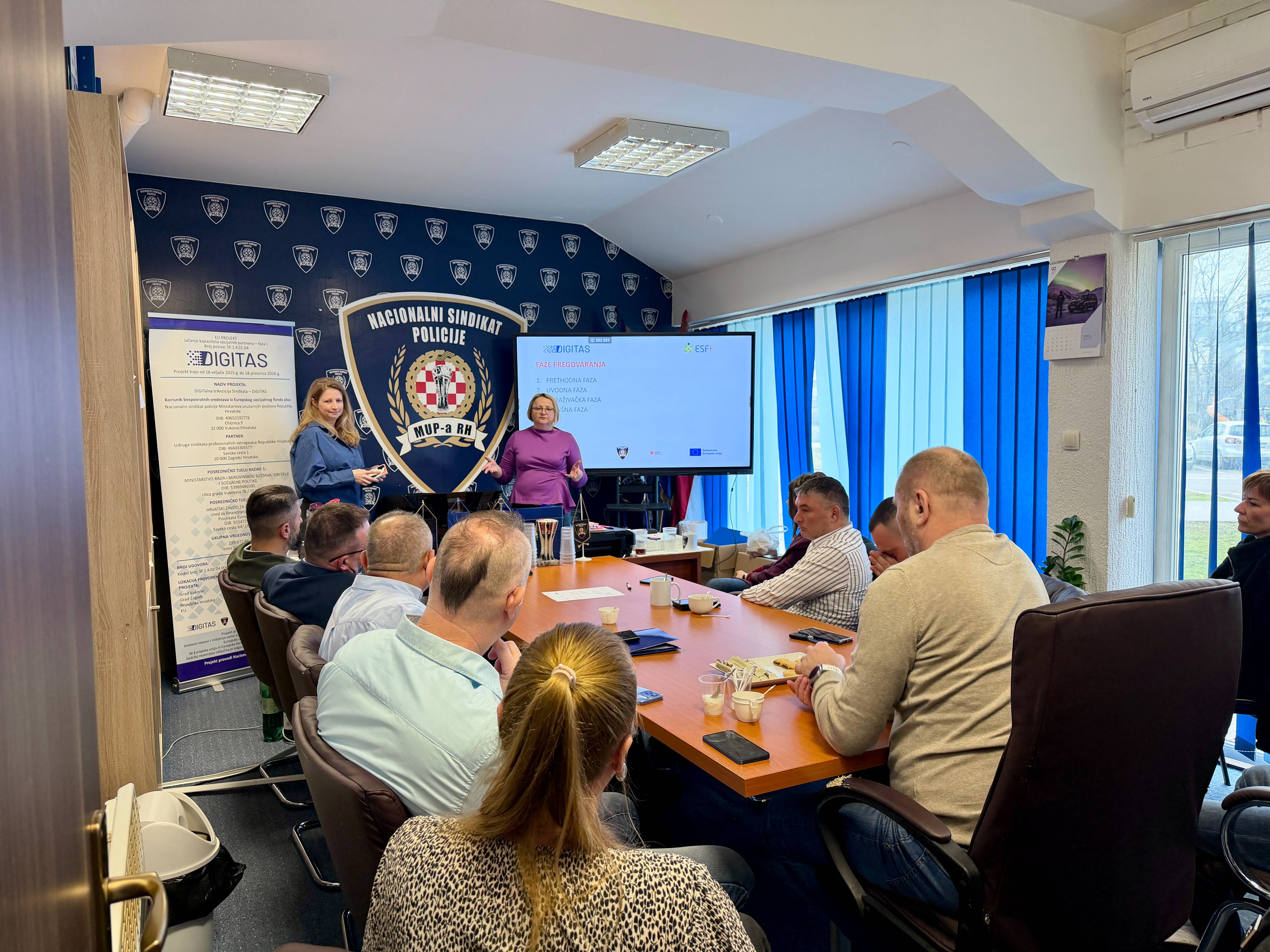 Uspješno je završena dvodnevna edukativna radionica “Tehnike socijalnog dijaloga”koja se održala 06. i 07.02. 2026. U Vukovaru. Edukativna radionica održana je u sklopu EU projekta „Digitalna tranzicija sindikata – DIGITAS / SF.1.4.02.04.0001 /kojega provodi Nacionalni sindikat policije MUP-a RH u partnerstvu s Udrugom sindikata profesionalnih vatrogasaca. Radionica je bila usmjerena na teme socijalnog dijaloga od organizacije sindikata od njegovog djelovanja u Republici Hrvatskoj, do kolektivnog pregovaranja. Na radionici su obrađene teme kroz sadržaje koji su digitalno kreirani i prezentirani: